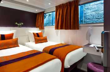 The MS Raymonde a true cocoon of charm, sails on the Belgian canals and offers its passengers an original and authentic experience. A superb premium canal barge, measuring 38,50 meters long and 5,07 meters wide, it can accommodate 22 passengers, in 11 cabins offering amenities and providing guests with all the comforts they need during their stay. On board, everything has been taken care of down to the smallest detail and the 6 crew members guarantee a personalized service. The decoration is stylish with an elegant and intimate atmosphere. Located on the upper deck are the restaurant, which offers delicate cuisine in a refined setting, the lounge bar and a relaxation area with a jacuzzi. Comfortable sun loungers are provided on the sun deck, the ideal place to relax and admire the surrounding landscapes.