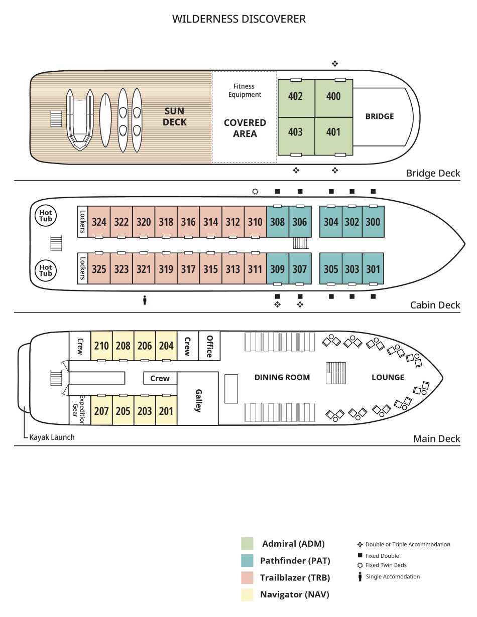 Wilderness Discoverer is a 76-guest expedition vessel designed for active exploration in remote coastal environments. The onboard experience is centred around adventure and discovery, with a relaxed atmosphere and interiors inspired by National Park lodges. Purpose-built for expedition cruising, the vessel’s layout and facilities are geared toward getting guests off the ship and into the environment, while still offering comfortable indoor and outdoor spaces to relax and observe the surrounding landscapes.